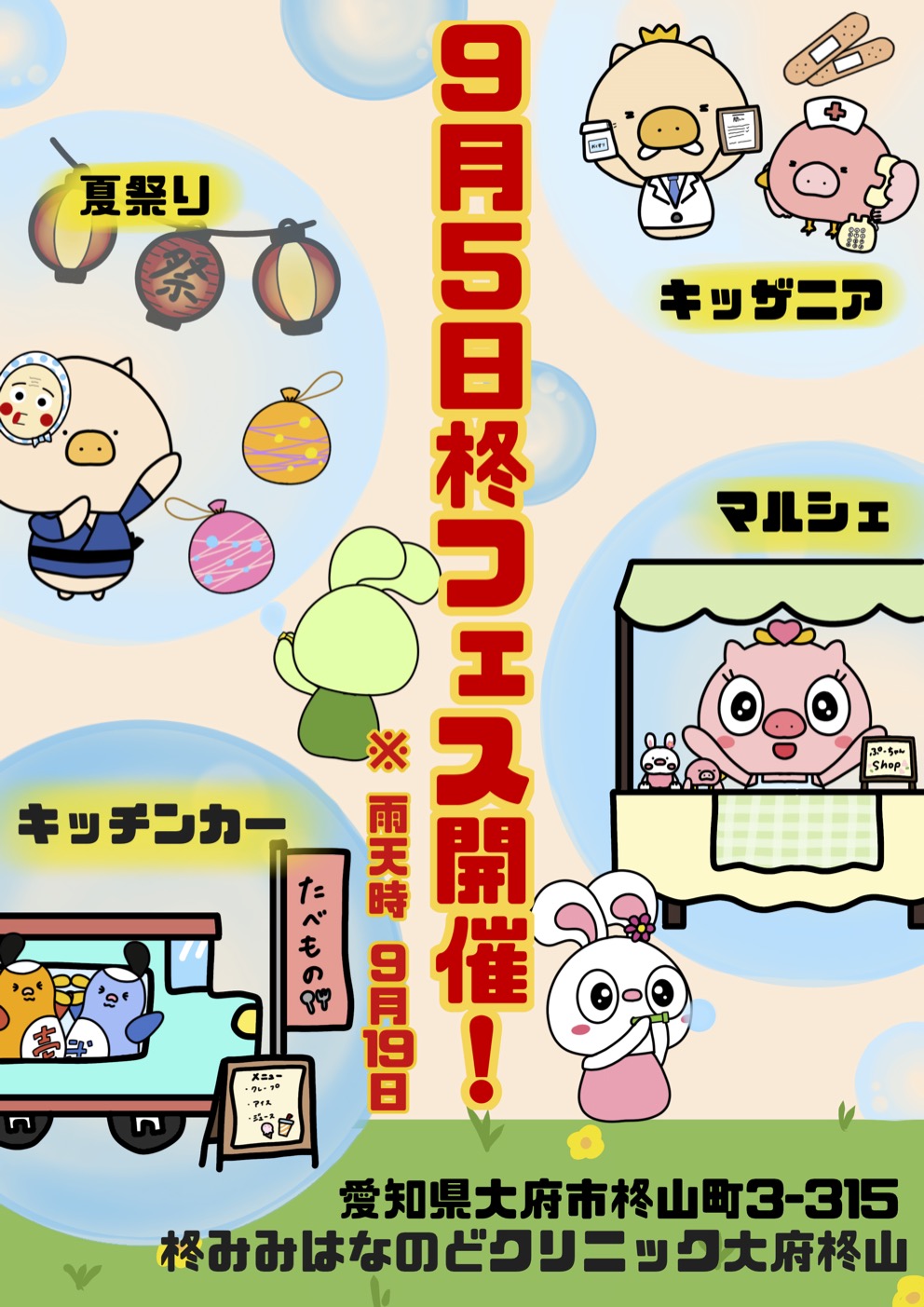 当日は、キッチンカーによるおいしい食べ物の販売や、子どもたちがお医者さんのお仕事を体験できる「キッザニア」、